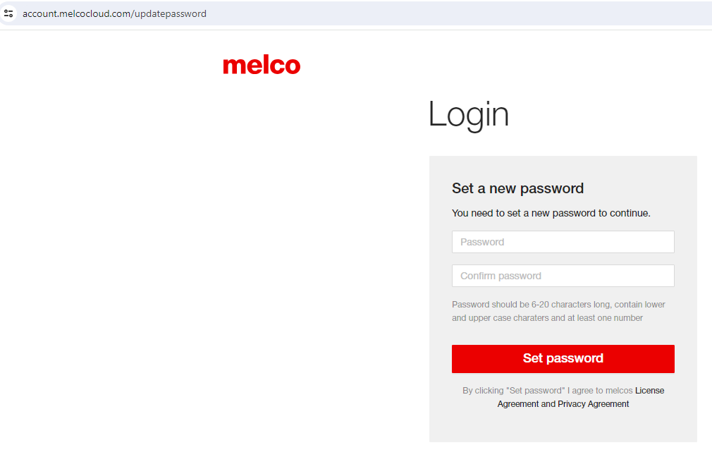 8) That new user will establish their own personal password by logging in to www.melcocloud.com