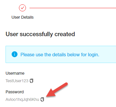 7) Copy the Temporary Password that is shown on the screen. This password will be needed for that new user to log in to Melco Cloud at www.melcocloud.com for the first time and then set their own personal password.