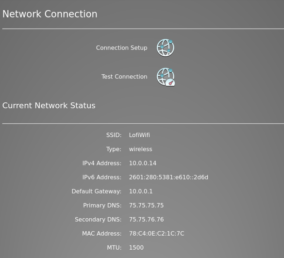 A Network Connection screen opens and the machine should pick up an IP Address from the router. Here is an example: