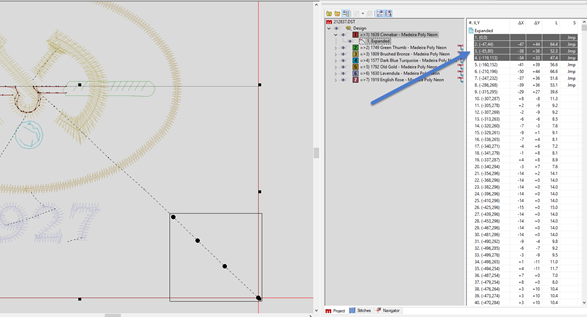 Centering Expanded designs can sometimes be a little trickier than wireframe (OFM) designs. If any jump stitches in the design are located outside the design stitching area they must be deleted before the design can be correctly centered. If the expanded design does not have any jumps outside the stitching area, then please follow the above steps to center the design, as the process is the same as centering wireframe designs.