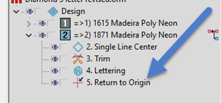 It is best practice if you own or digitize for older, non-Amaya or EMT16 machines, that you set the needle to return back to the origin after the last stitch. This is very simple to do in DesignShop. After opening, digitizing, or editing a design just click on the Return to Origin icon which is located on the left side of the DesignShop screen shown below.